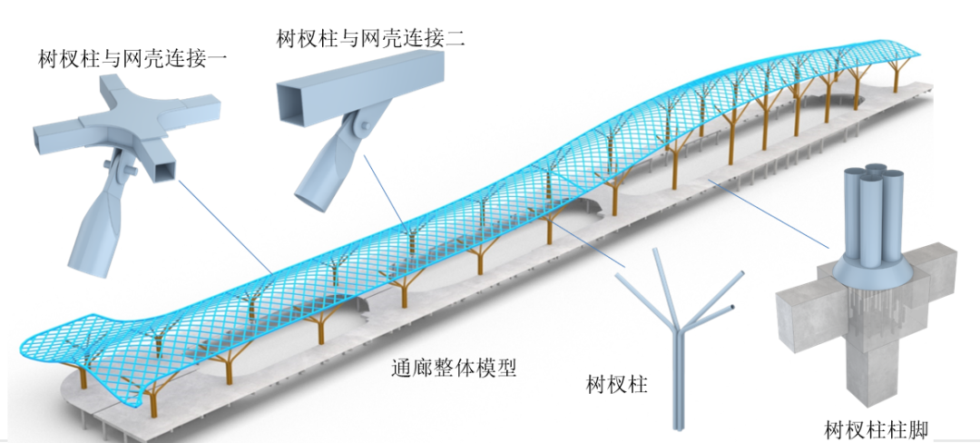 中心通廊作為串聯(lián)項目各分展館的關鍵樞紐,采用樹形支撐與單層空間曲面網(wǎng)殼相結(jié)合的結(jié)構(gòu)形式,整體尺寸達26.4米寬、415米長,最高點達30.8米,相當于10層樓高。本次作業(yè)完成了剩余69米長、185噸重的網(wǎng)殼結(jié)構(gòu)的提升工程,與前兩階段已就位的1015噸主體結(jié)構(gòu)實現(xiàn)毫米級精準對接。整個提升過程分階段累計高空作業(yè)10小時,最終將這一“鋼鐵巨構(gòu)”平穩(wěn)舉升到位。?